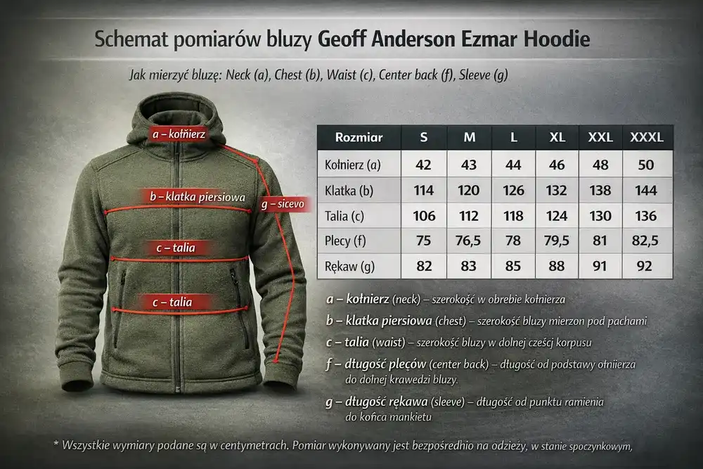 Tabela rozmiarów – Ezmar2+ i Ezmar Hoodie (cm)