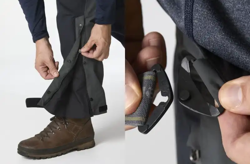 - Zamek i guziki w dolnej części nogawek – ułatwiają zakładanie butów