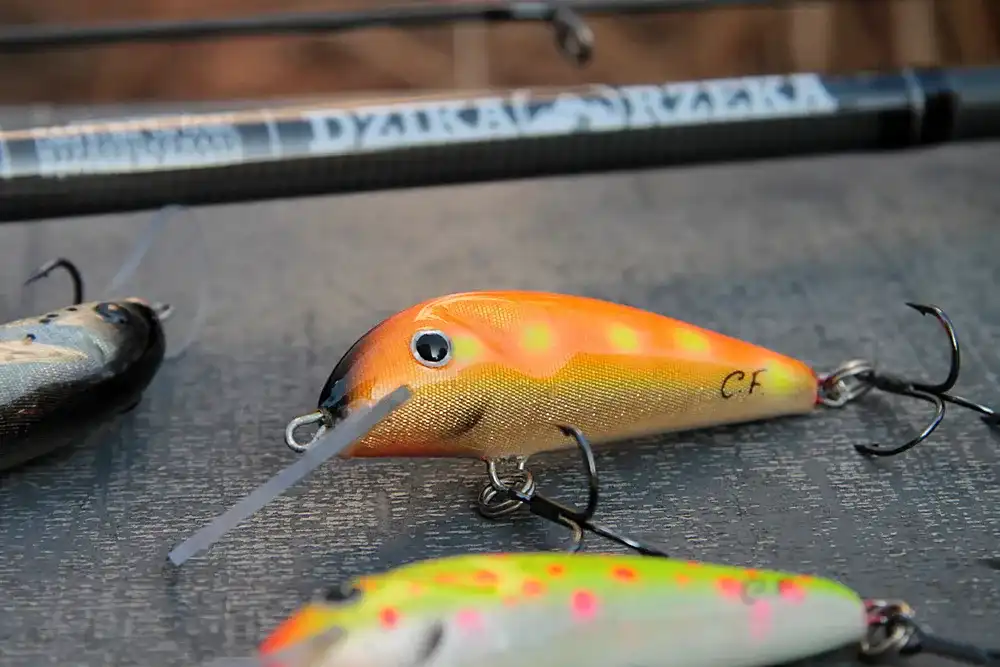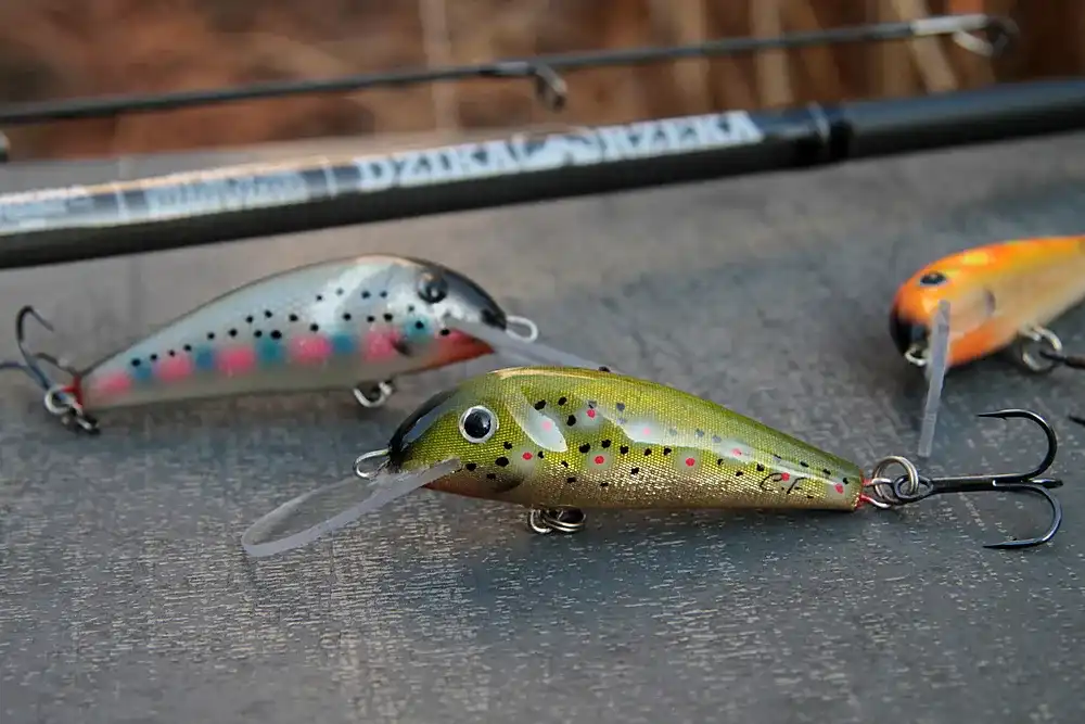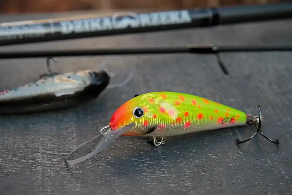 Wobler lekko pływający. Uzbrojony w kotwice nr 4.